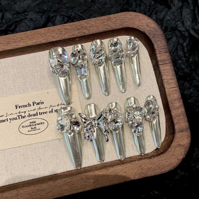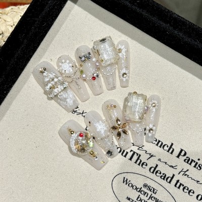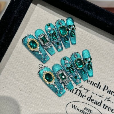 10Pcs High Quality Handmade Press on Nails Heavy Industry Advanced Display White Emerald Sparkling Series Wear on Nail Art Detac