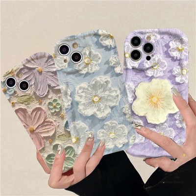 Retro Oil Painting Daisy Flowers Phone Case for Iphone 15 Pro Max 11 12 13 14 Pro Max 7 8 Plus XR XS X 12 Mini Wavy Soft Fundas
