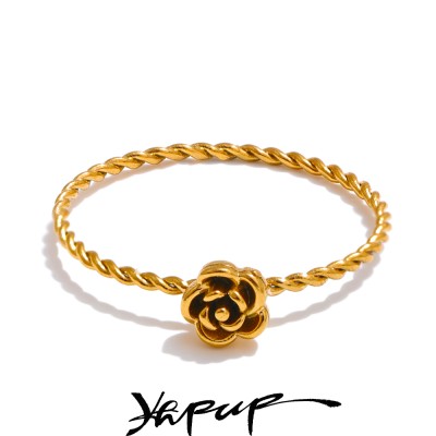 Yhpup 678# Popular Stainless Steel Metal Cast Small Flower Ring Waterproof Fashion Finger Jewelry 18K PVD Plated Wholesale