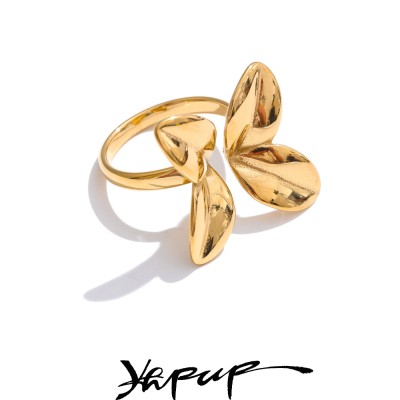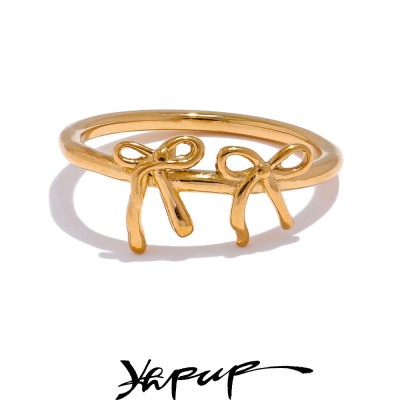 Yhpup Stainless Steel Casting Bow Knot Fashion Finger Ring Trendy Element for Women 18k PVD High Quality Plated Jewelry