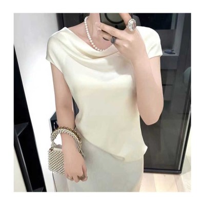 2025 Popular Elegant Short Sleeves Breathable Elastic Satin Silk T Shirt for Summer