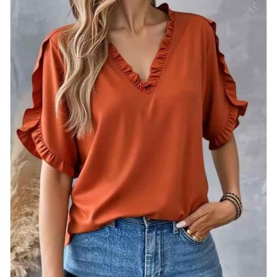 Women's Summer Solid Short-sleeve V-neck Shirt Tops Women Casual Tops T Shirts