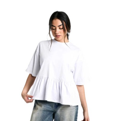 Cotton Solid Half Sleeve Oversized O-neck T-shirts with Drop Shoulder and Flare Hem Design