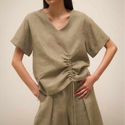 Women's Clothing Combed Cotton Tshirts Linen Tee Shirt