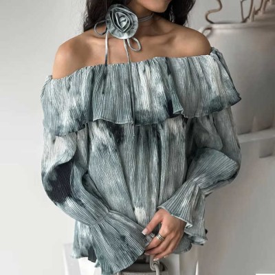 Off Shoulder Women T-shirts Lace up Casual Autumn Fashion Elegant Satin Long Sleeve Blouses Womens Clothing Manufacturers