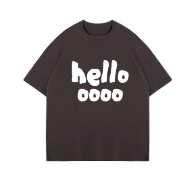 2025 Summer Women Clothing Black Plum Purple Crew Neck T-Shirt Wholesale Short Sleeve Simple Designer Hello Letter Shirt