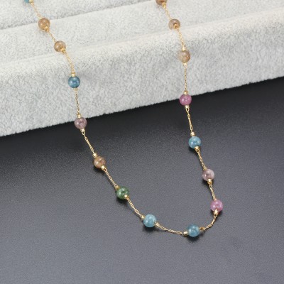 Stainless Steel Natural Crystal Stone Beaded Chain Necklaces For Women Bohemia Multicolor Long Neck Choker Jewelry 16-30 Inch