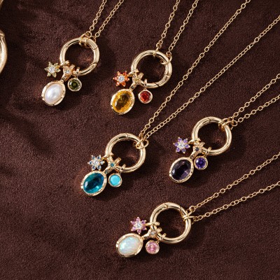 Colorful Twelve Birthday Stone, niche living ring necklace, women's collarbone chain, gold-plated and color preserving