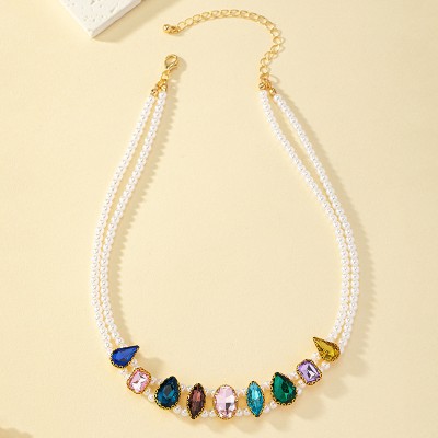 Pearl Colored Stone Necklace Pendant Chain Women Girls Gifts Simple Fashion Neck Jewelry Hot Sale Party Gift 2024 New Style