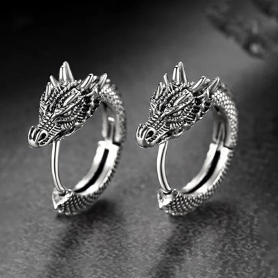 Personality Chinese Dragon Hoop Earrings for Women/Men Antique Metal Color Hip Hop Cool Guys Loong Earrings Hot Jewelry