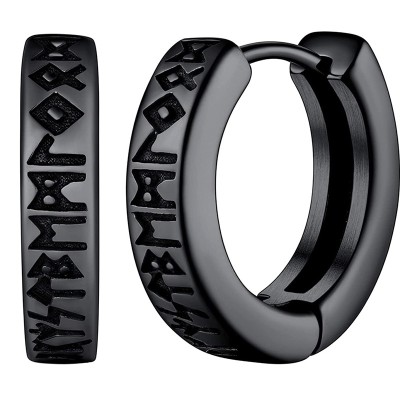 Stainless Steel Norwegian Viking Rune Hoop Earrings For Men Woman Unisex 12 Mm Huggie Hoop Religious Earring Jewelry