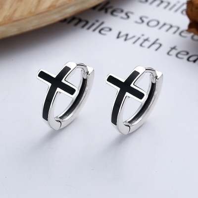 1 Pair Punk Black Cross Ear Buckle Small Hoop Earrings For Men/Women Classic Retro Hip Hop Party Gothic Ear Jewelry