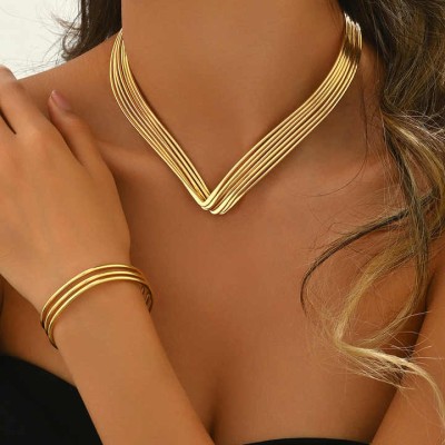Promotion Fine Geometric Jewelry Set Gold Jewelry for Women Gifts Vintage Choker Cuff Necklace Bracelet Set for Wedding Gifts