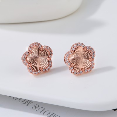 Plant Flowers Geometric Five Leaf Petals Women Luxury Earrings Shiny Clover