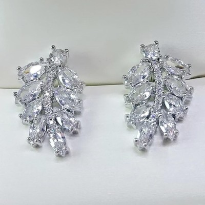 Fashionable Leaf Design Micro-set Zircon Women's Stud Earrings