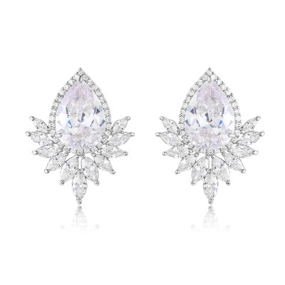 Shiny and Sparkly Wedding Jewelry Pear Cut Cubic Zirconia Stud Earrings