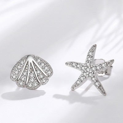 Silver Color Korean Fashion Small Snowflake Zircon Stud Earrings