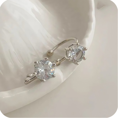 Silver Color Shiny Cubic Zirconia Ear Bone Clips