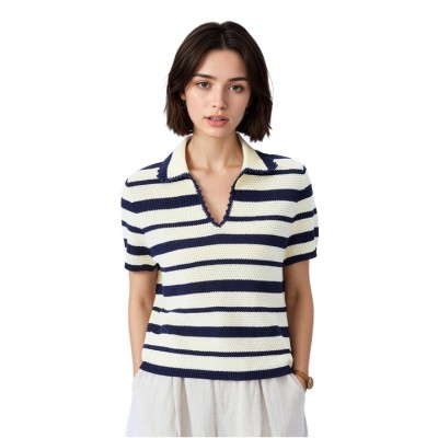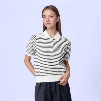 Women's Collar Striped Polo T-Shirt 100% Cotton Casual Short Sleeve Blouse Fashion Ladies Tops