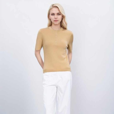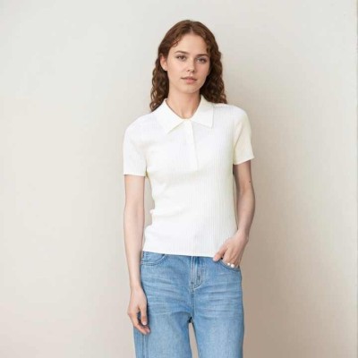 Women's T-Shirts Casual Style Short Sleeve for Polo T Shirts Soft Knitwear