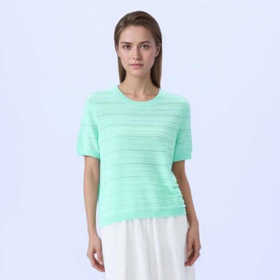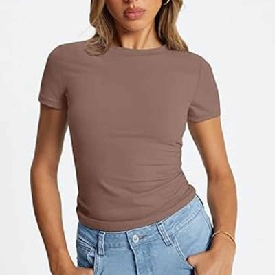Women's Knit Short Sleeves T Shirt Lightweighted Breathable Solid Color Pullover for Women Summer Casual Style