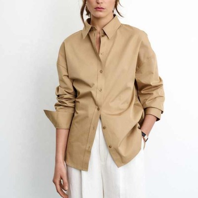 Oversized Cut with Dropped Shoulders Oversized Shirt Camel Tan Cotton Poplin Shirt Blouse