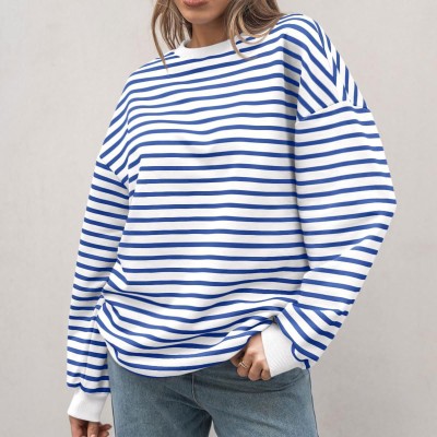 Womens Stripe Printed Long Sleeve Pullovers Casual Crew Neck Oversized Sweatshirt Loose Fit Fall Hoodless Commute Sweatshirts