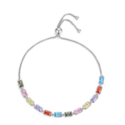 Colored Moissanite Jewelry Fashion Pull Adjustable Chain Link Bracelet for Women