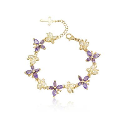 butterfly Cross Design Multi Color Zircon Copper Bracelet Jewelry Accessories for Women