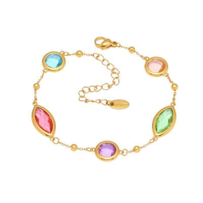 Women's Gold Stainless Steel Chain Bracelet with Colored Rhinestones Popular Charm Bracelets