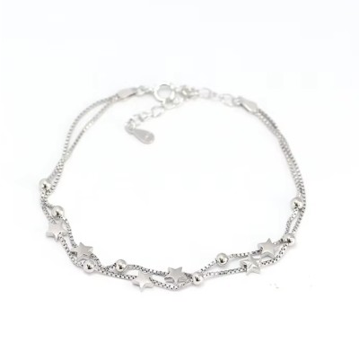 Sterling Silver Bracelet Fine Jewelry Double Layer Stars Bracelet