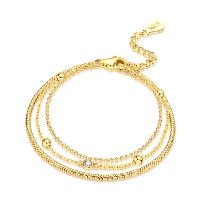 Sterling Silver Three Layers Bracelet Chain Link Women Bracelet