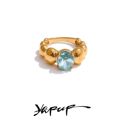 Size 7.5 Cubic Zirconia Casting Golden Ring Stainless Steel High Quality PVD Plated Finger Jewelry Gift