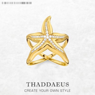 Gold Plated Ring Starfish Brand New Fine Jewerly Trendy 925 Sterling Silver Gift For Women