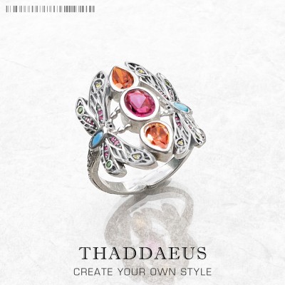 Ring Colourful Dragonfly,Handcrafted Women Fine Jewerly Summer Brand New 925 Sterling Silver Bohemia Happy Gift