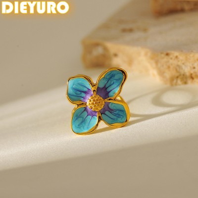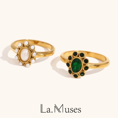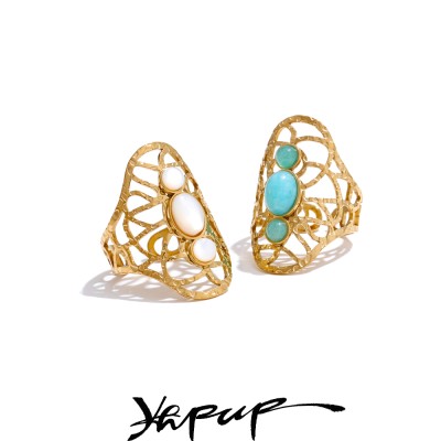 YACHAN 18K Gold Plated Stainless Steel Rings for Women Luxury Opal Vintage Aesthetic Designer Jewelry Waterproof