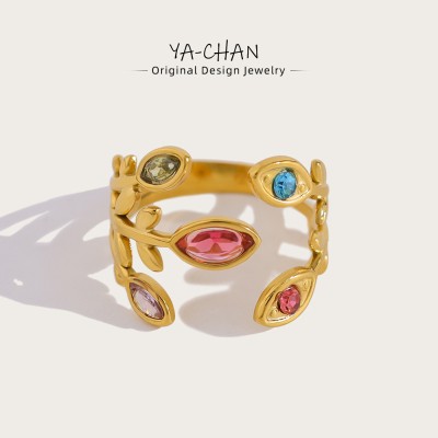 YACHAN Luxury Colorful Crystal Stainless Steel Ring for Women Chic 18K Gold Plated Trendy Jewelry Waterproof