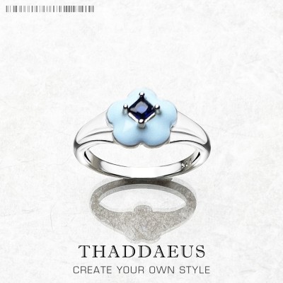 Ring Blue Flower Europe Style Fine Jewerly For Women Winter Brand New Trendy Gift In Real 925 Sterling Silver