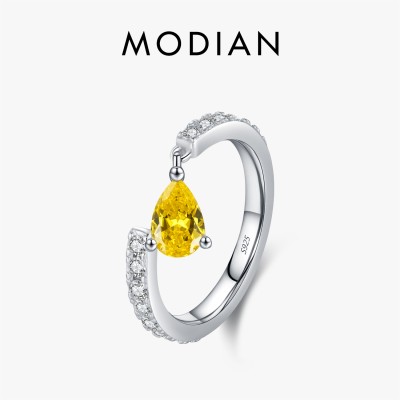 MODIAN 925 Sterling Silver Exquisite Water Drop Cubic Zirconia Adjustable Swing Charm Stackable Pinky Rings For Women Jewelry