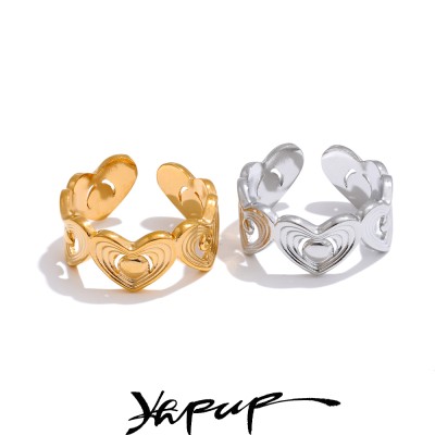 Yhpup Exclusive Design Stainless Steel Metal Stripe Heart Love Open Ring for Women Charm Texture Adjustable Fashion Jewelry Gift
