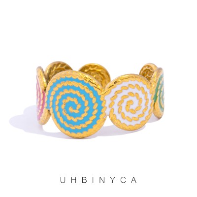 18K Gold Plated Stainless Steel Enamel Twist Ring, Minimalist Colorful Hypoallergenic Unique Jewelry Gift for Women