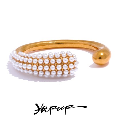 Yhpup Elegant Imitation Pearls Golden Stainless Steel Open Fashion Ring for Women Exquisite Chic Finger Jewelry Bijoux Femme