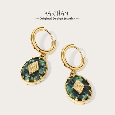 YACHAN Stainless Steel Drop Earrings For Women African Turquoise Natural Stone 18K Gold Plated Hoop Earring Trendy Jewelry Gift
