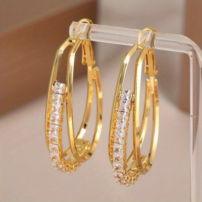 Shiny Rhinestone Decor Hoop Earrings Women's Holiday Party Temperament Jewelry Accessories, Perfect Birthday Gift