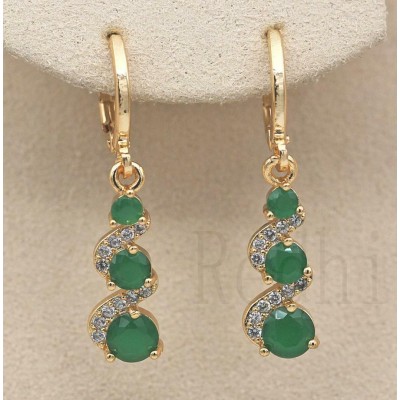 Classic Trend Earrings Gold Color Swirl Green Stone Dangle Earrings for Women Jewelry