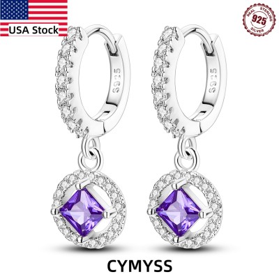 Sterling Silver Purple Princess Square Earrings Fine Jewellery Birthday Anniversary Gift Women's Earrings