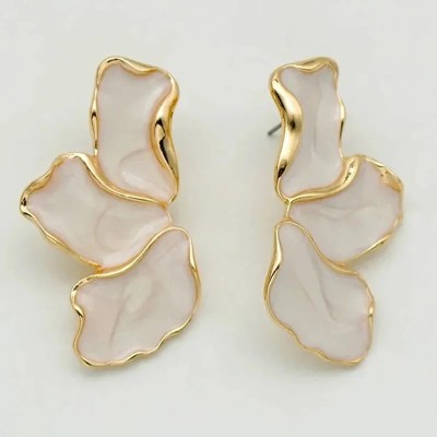 Metal Flower Cream Stud Earrings for Women Fashion Gold Color Plating Irregular Post Earrings Heavy Design Statement Earring