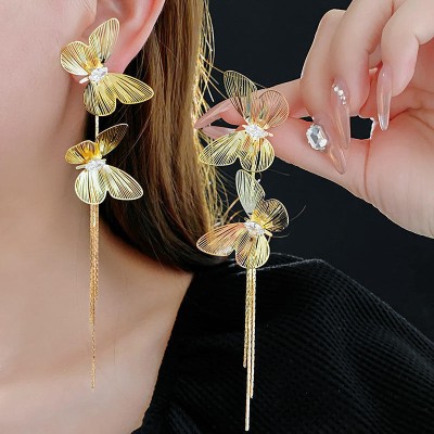 Butterfly Tassel Earrings for Women Vintage Gold Color Metal Hollow Drop Earrings