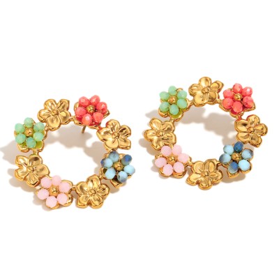 Stainless Steel Colorful Wreath Earring Plated 18k Gold Color Non Tarnish Waterproof Trendy Jewelry Earring for Women Gift