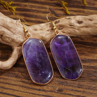 Amethyst Big Stone Dangle Earrings Natural Stone Crystal Drop Healing Gemstone Earrings for Women Gift